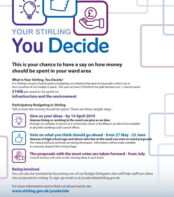 Stirling Council are holding both drop in information and online information sessions: Drop In sessions at the Bridge of Allan Library : Monday 10th November, 2pm to 5pm Tue 11th November, 3pm to 7pm. Online Microsoft Teams Session on Monday 17th November, 7.30pm to...