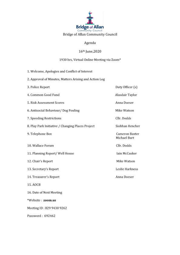 Our June meeting will be held on 16th June at 7.30pm via Zoom. The agenda and Zoom login details are attached below